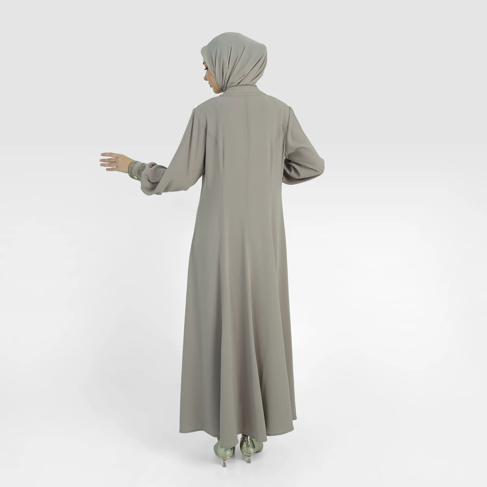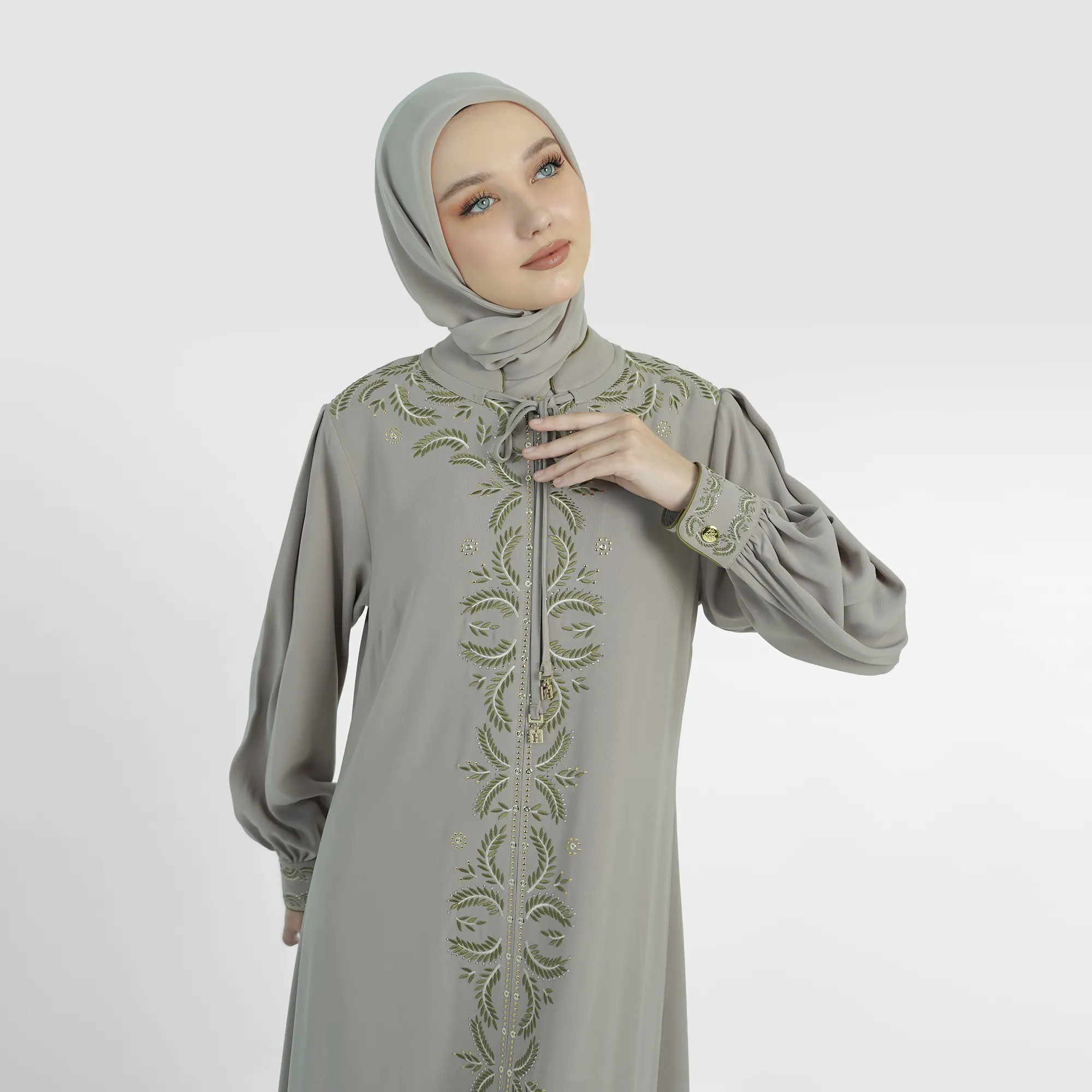 The Arbelliya Abaya embodies elegance in simplicity. Each vertical embroidery detail adorning the front creates an elongating silhouette and accentuates the wearer's elegant character. Crafted from high-quality, soft fabric with a comfortable, loose cut, this abaya delivers modern grace without losing its classic touch.This Premium Abaya is suitable for formal events and special occasions that demand a refined and dignified appearance.