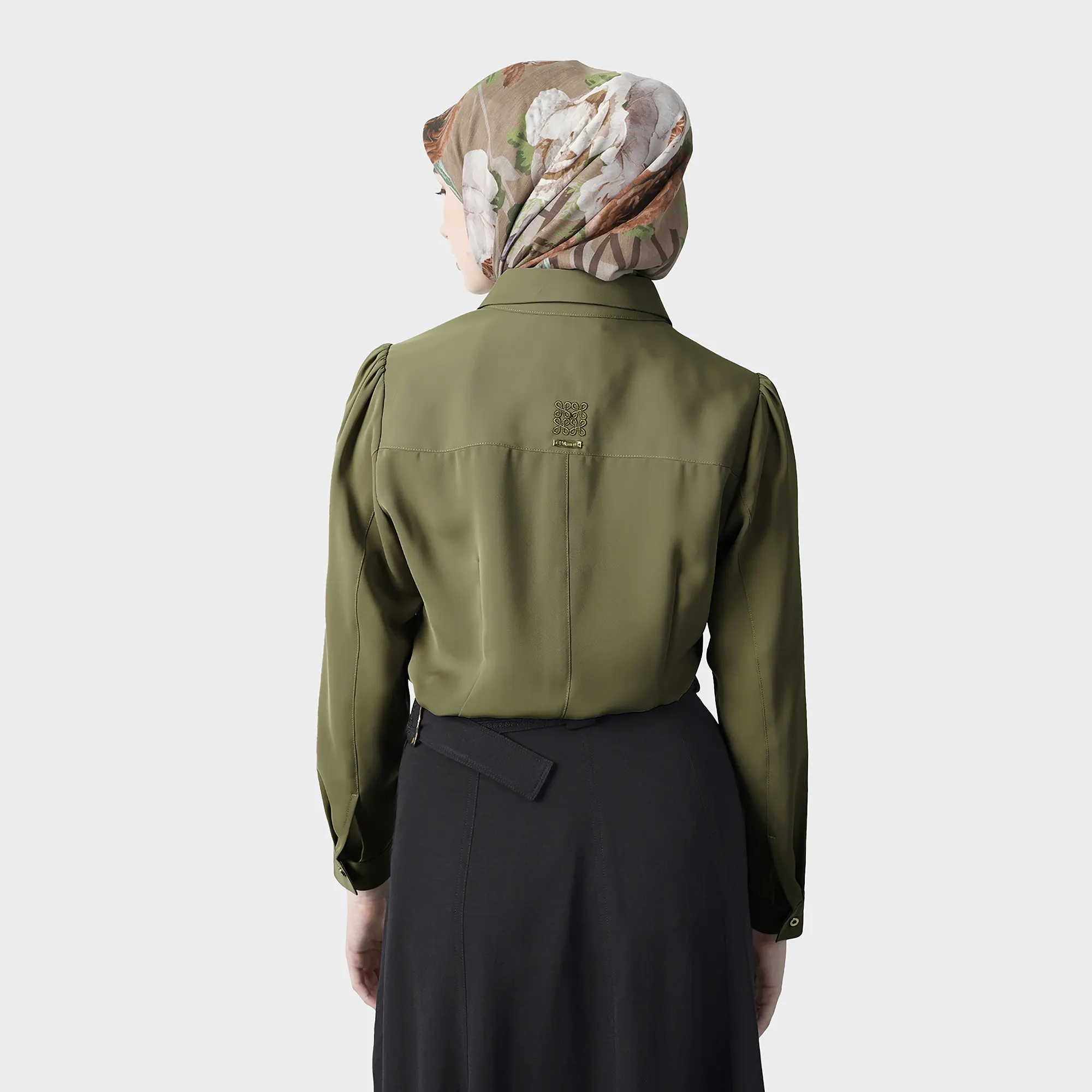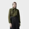 An elegant blouse featuring vertical pleats that accentuate a slender and graceful silhouette. Designed with a classic collar and metallic buttons that enhance its appearance, making it a perfect choice for both formal and casual occasions.