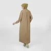 The Elegis Panel Abaya features a clean silhouette with bold and refined vertical panels. This minimalist design is enhanced by front accents that create a tall, neat, and sophisticated look. It is the perfect choice for those who value elegant simplicity in a timeless and versatile Premium Abaya.