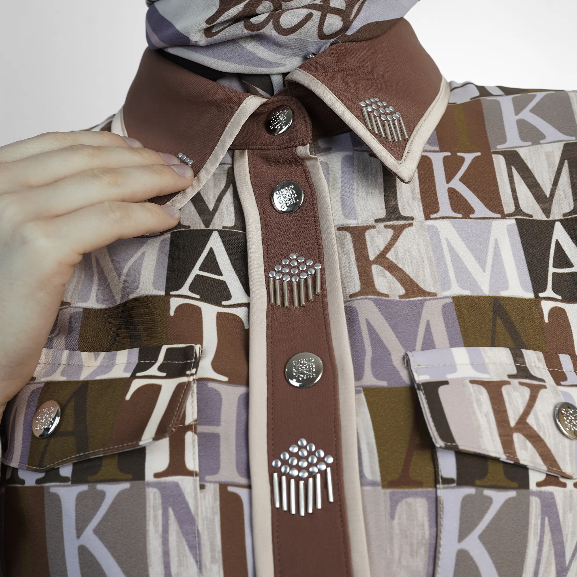 • Front button details with an accent belt