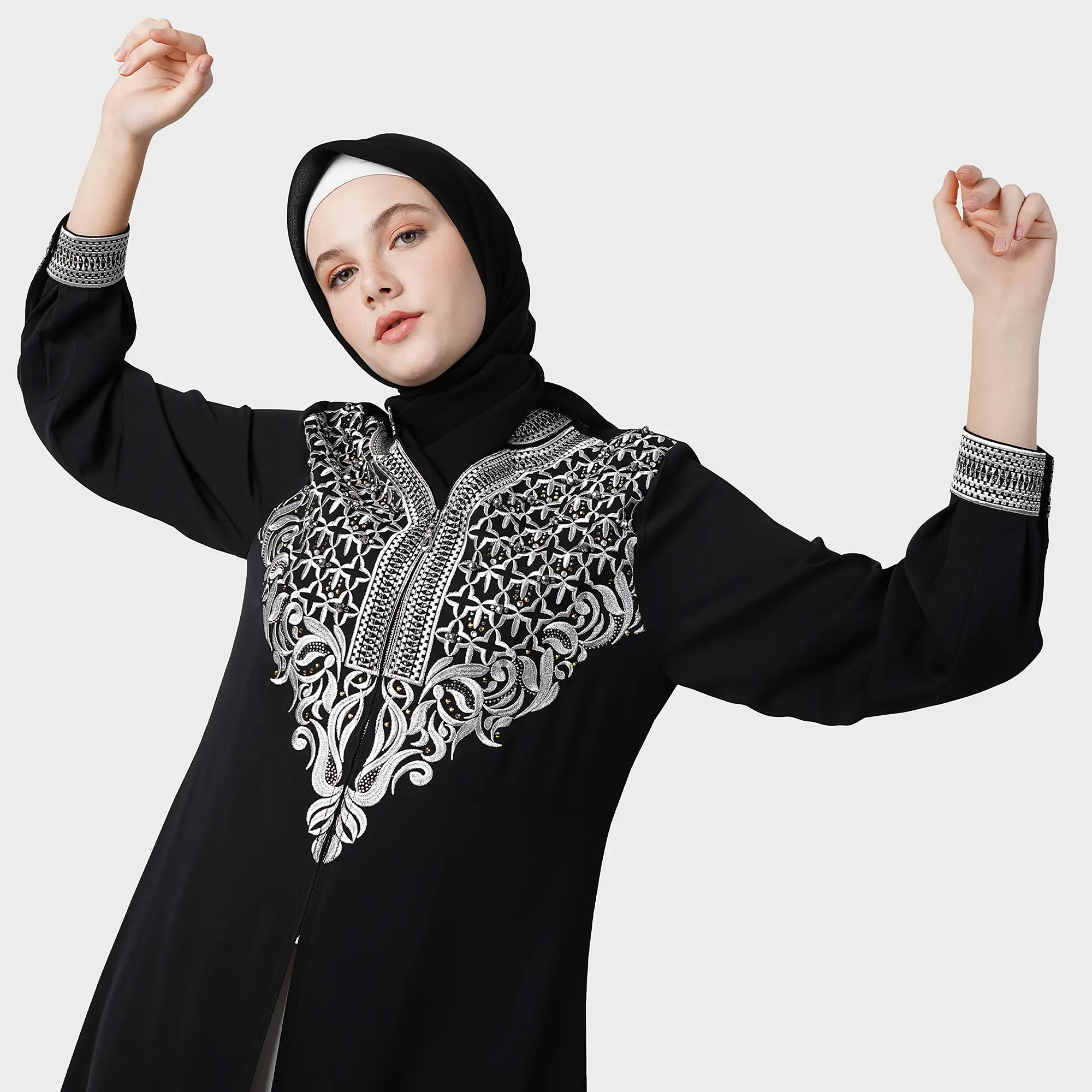 Classic Flouris Abaya menghadirkan sentuhan klasik dengan bordir detail yang megah di bagian dada. Desain ini memadukan keanggunan tradisional dengan siluet modern, menjadikannya pilihan abaya yang menonjolkan pesona elegan dan berkelas di setiap kesempatan.