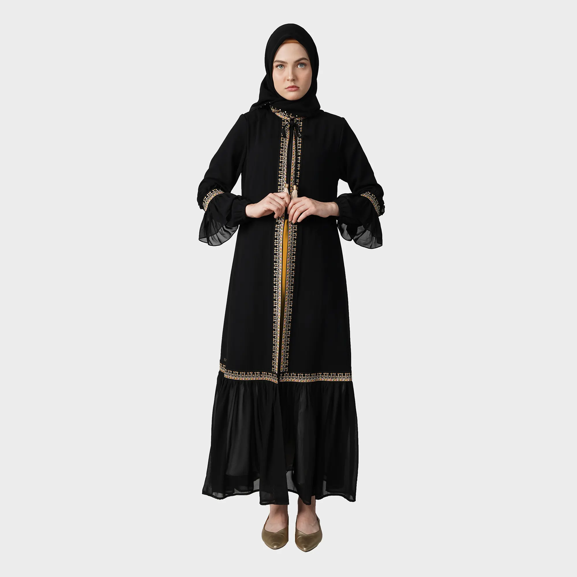 Tampilkan pesona anggun dan keindahan dengan HIKMAT Celestial Charm Abaya, sebuah karya seni modest fashion yang didesain untuk wanita yang menghargai keanggunan dalam setiap detailnya. Abaya ini hadir dengan full accessories berkilau yang memukau di bagian atas, menciptakan kesan mewah dan berkelas.