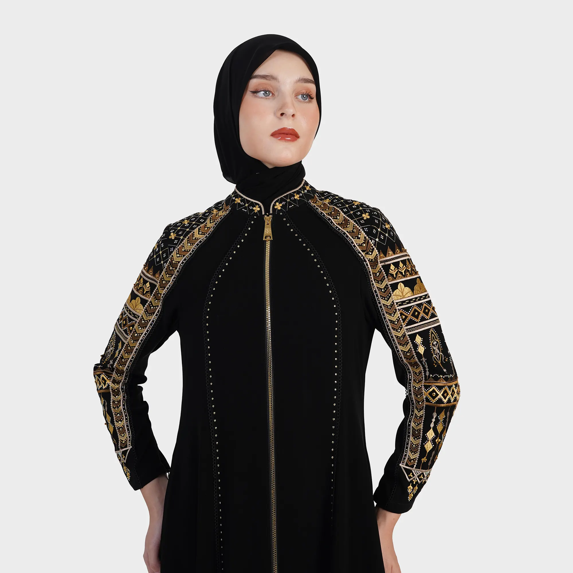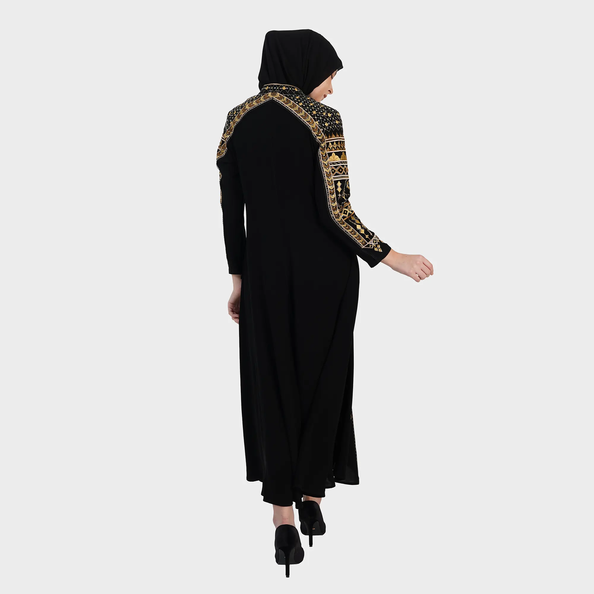 • Desain Abaya Premium dengan motif geometris artistik pada bahu dan lengan