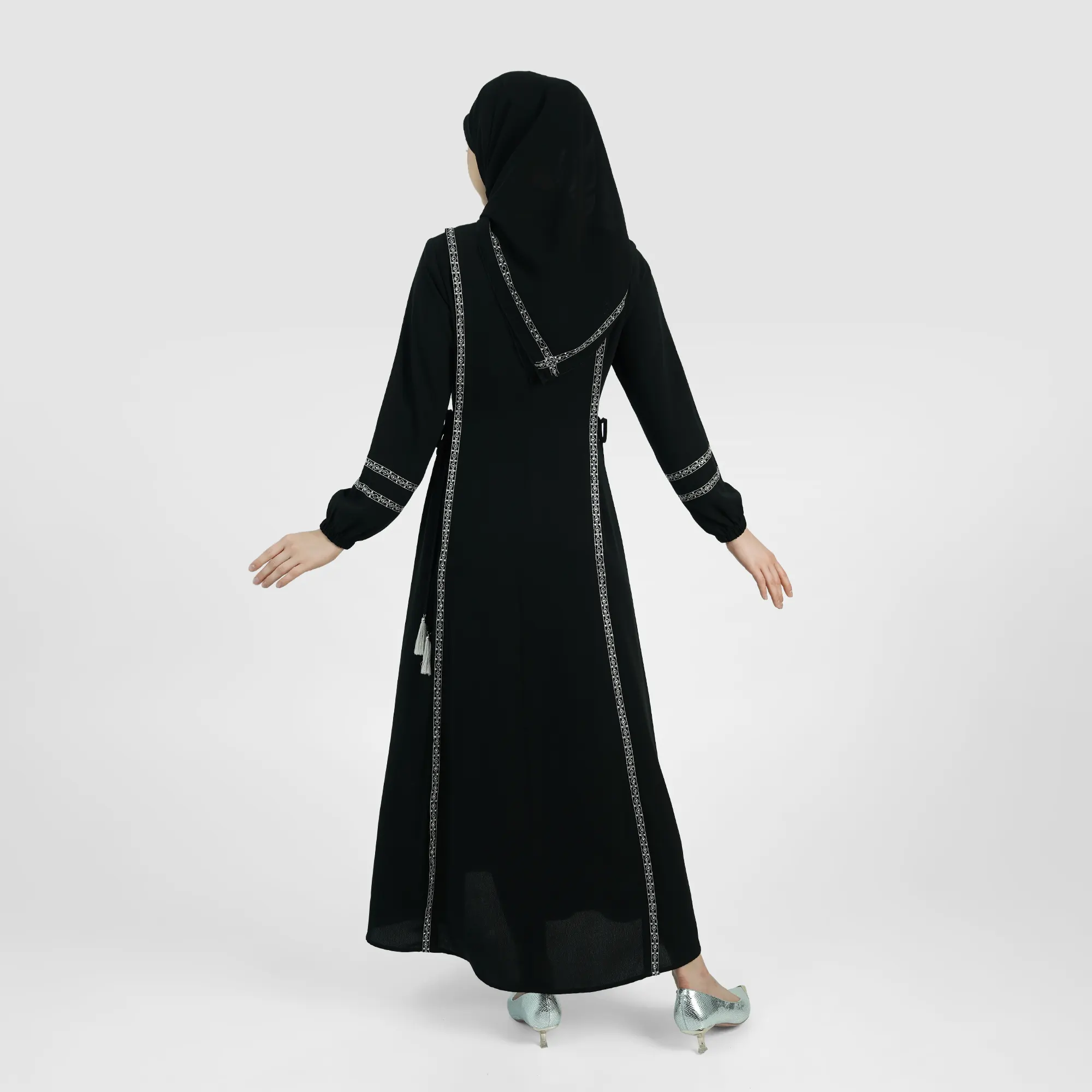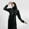 Nasma Pearl Abaya adalah Abaya Premium dengan detail mutiara lembut yang disusun membentuk garis elegan pada area dada dan lengan. Siluetnya yang jatuh anggun memberikan kesan ramping dan modern, sementara aksen piping geometris menambah karakter eksklusif khas HIKMAT. Abaya ini dirancang untuk menghadirkan tampilan wanita Muslimah yang berkelas namun tetap sederhana.