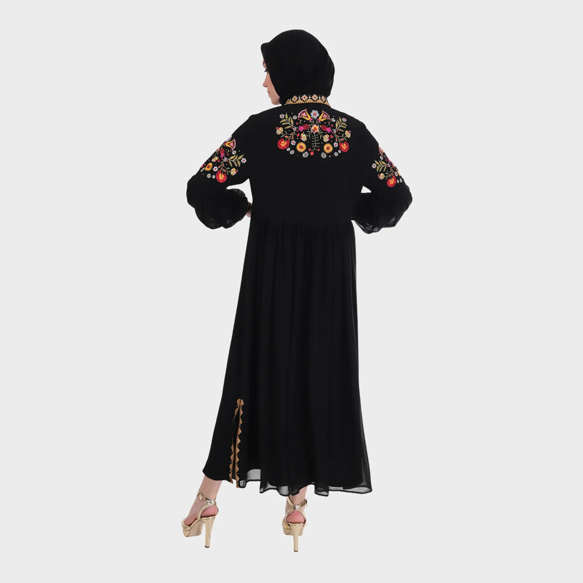 Fioria Drape Abaya menghadirkan keanggunan dalam sentuhan klasik yang memikat. Motif bordir bunga yang rumit di bagian lengan dan garis vertikal di depan menciptakan ilusi tubuh yang jenjang dan berwibawa. Potongan longgar dan material ringan menjadikannya pilihan sempurna untuk tampilan yang feminin sekaligus berkelas.
