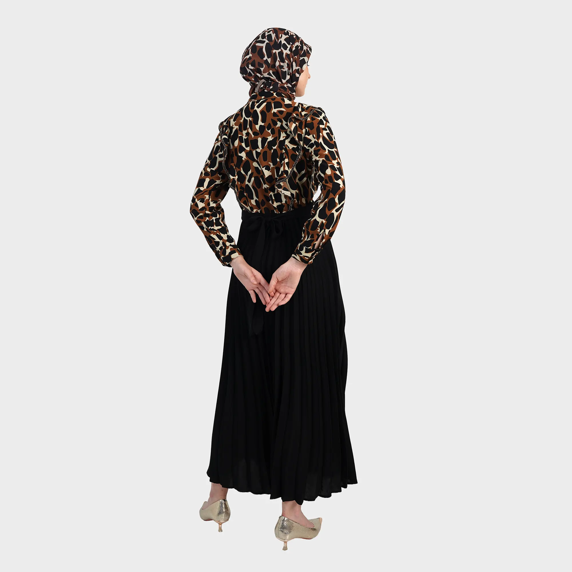 Berani tampil berbeda dengan sentuhan motif yang hidup, Wildora Luxe Dress menghadirkan energi modern dalam balutan Dress Muslimah Premium yang elegan. Perpaduan antara atasan bermotif ekspresif dan rok pleats yang flowy menciptakan harmoni antara bold statement dan refined silhouette.Dirancang untuk wanita yang ingin tampil standout tanpa meninggalkan kesan classy, dress ini menjadi pilihan sempurna untuk momen spesial maupun gaya sophisticated sehari-hari.