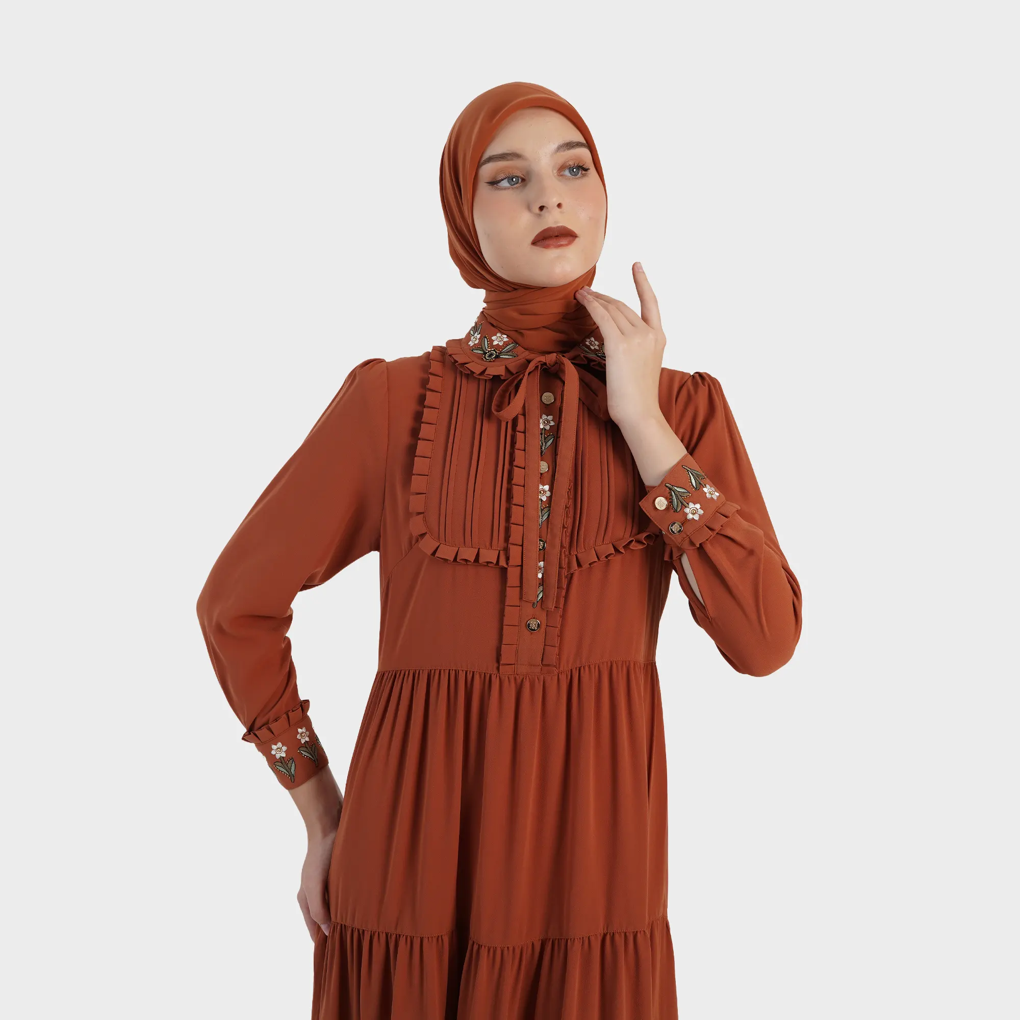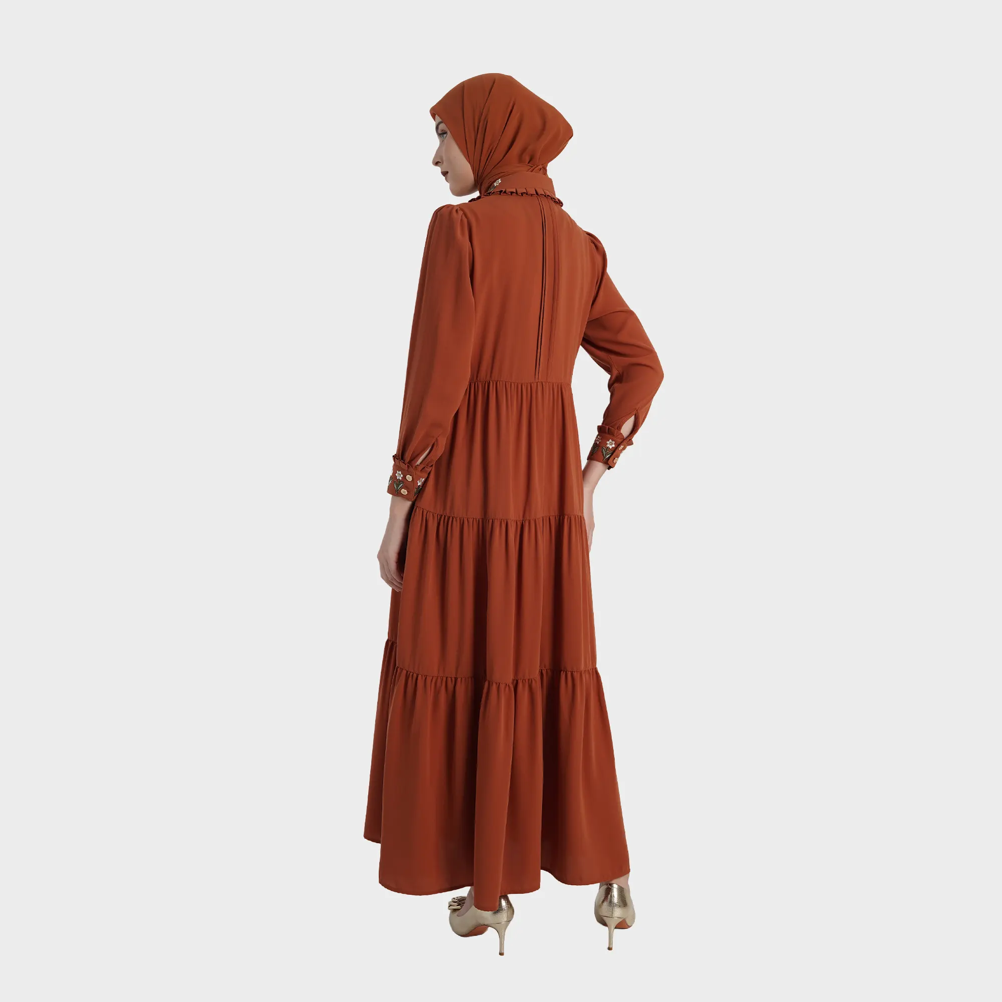 Desain Dress Muslimah Premium dengan detail ruffle elegan