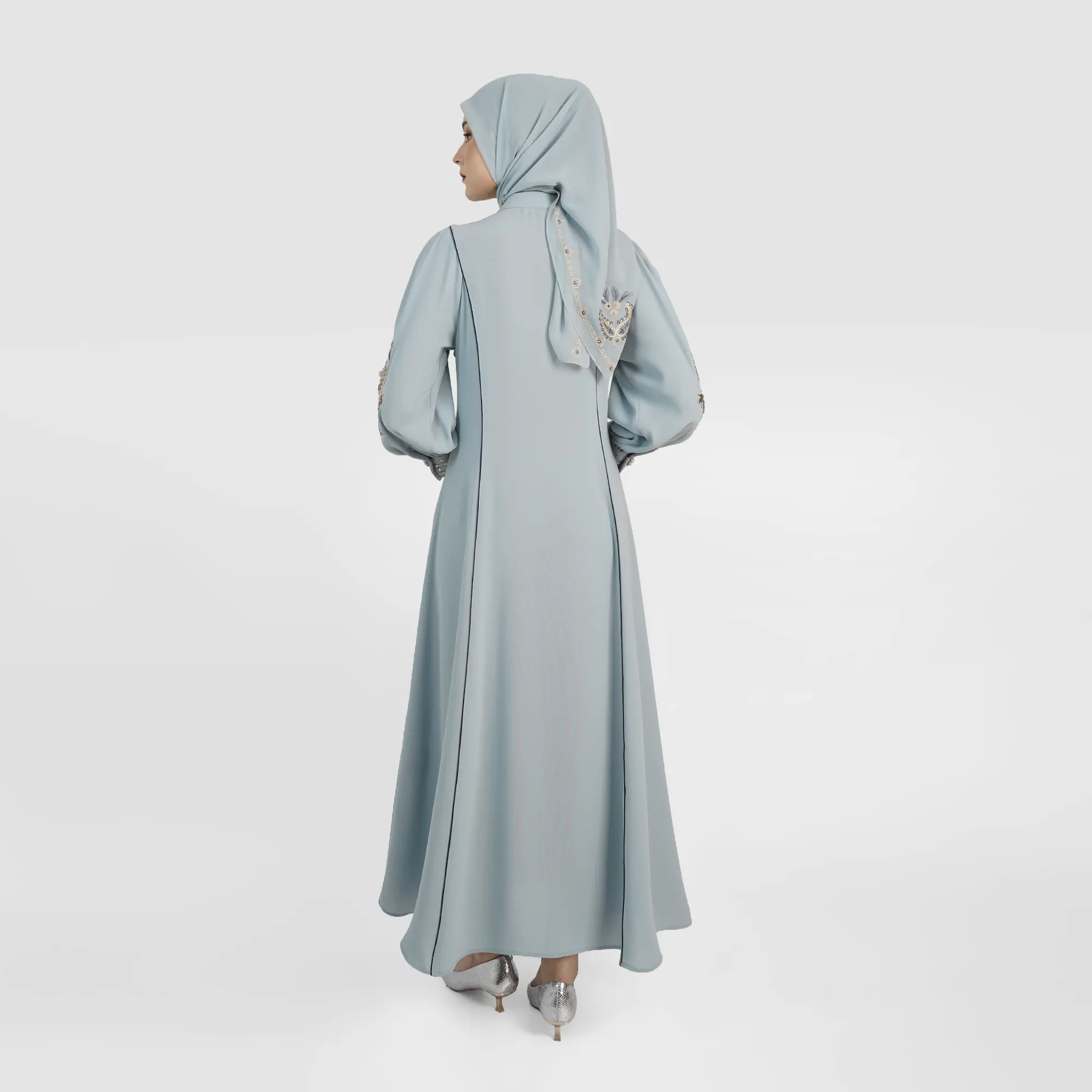 Embro Luxe Abaya adalah representasi keanggunan dalam balutan Abaya Premium dengan detail bordir eksklusif yang mempertegas siluet. Aksen bordir pada bagian dada dan lengan menciptakan tampilan mewah yang refined, sementara potongan panjang dan kancing depan memberikan kesan elegan dan modern.
